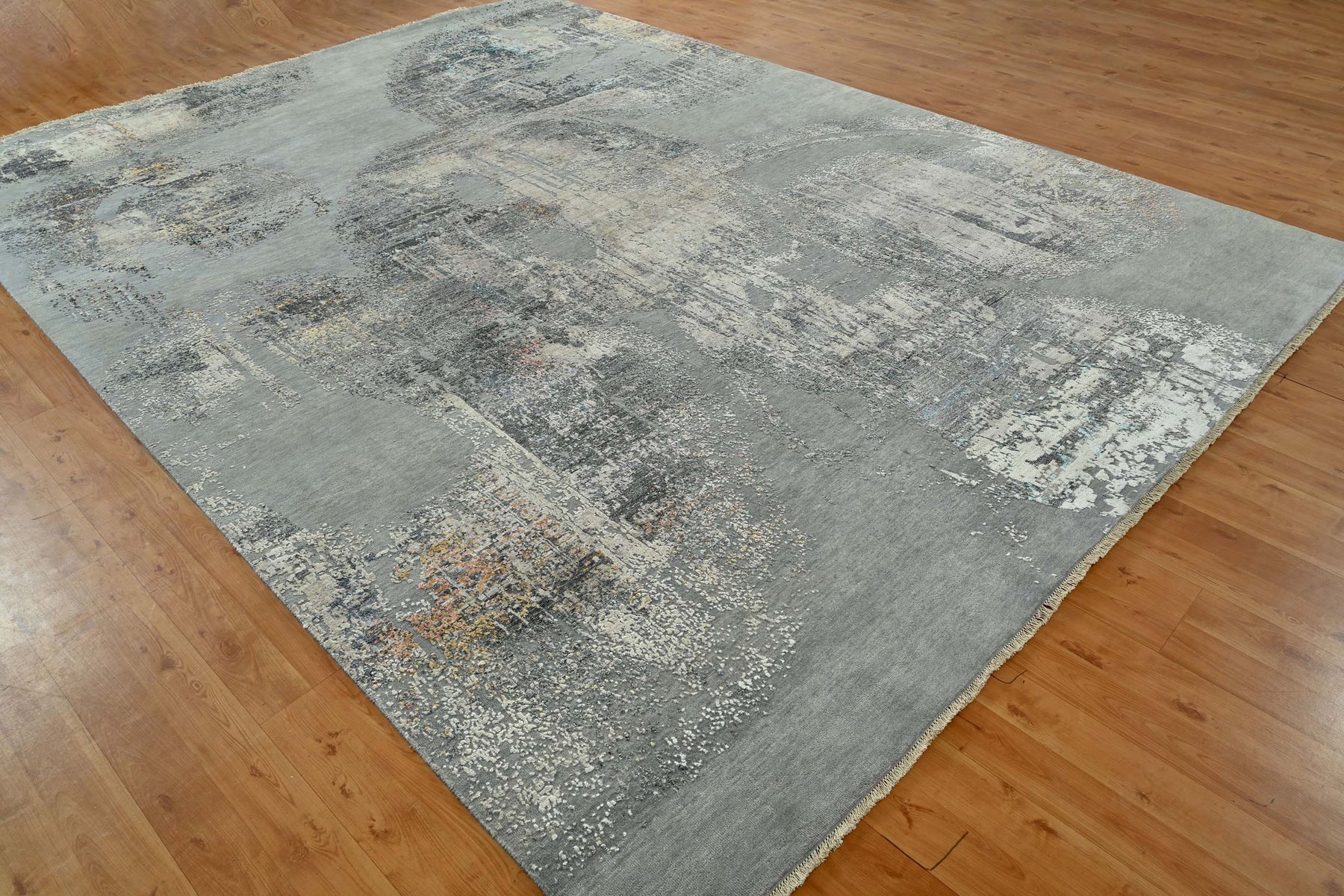 Hand-knotted in India of wool and bamboo silk, the Artist Collection is sophisticated yet an abstract expression of pattern that continually shifts tones in the light.