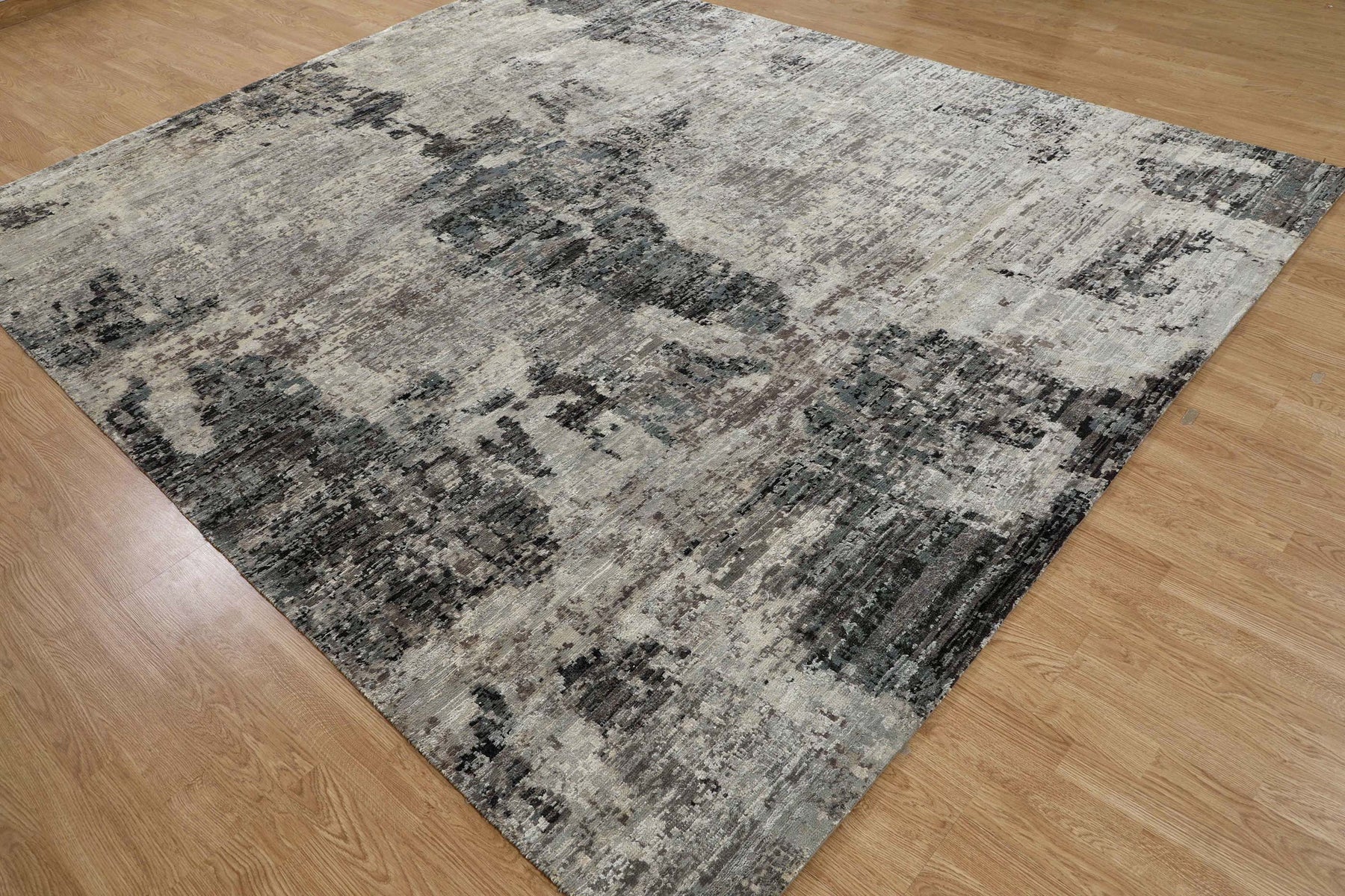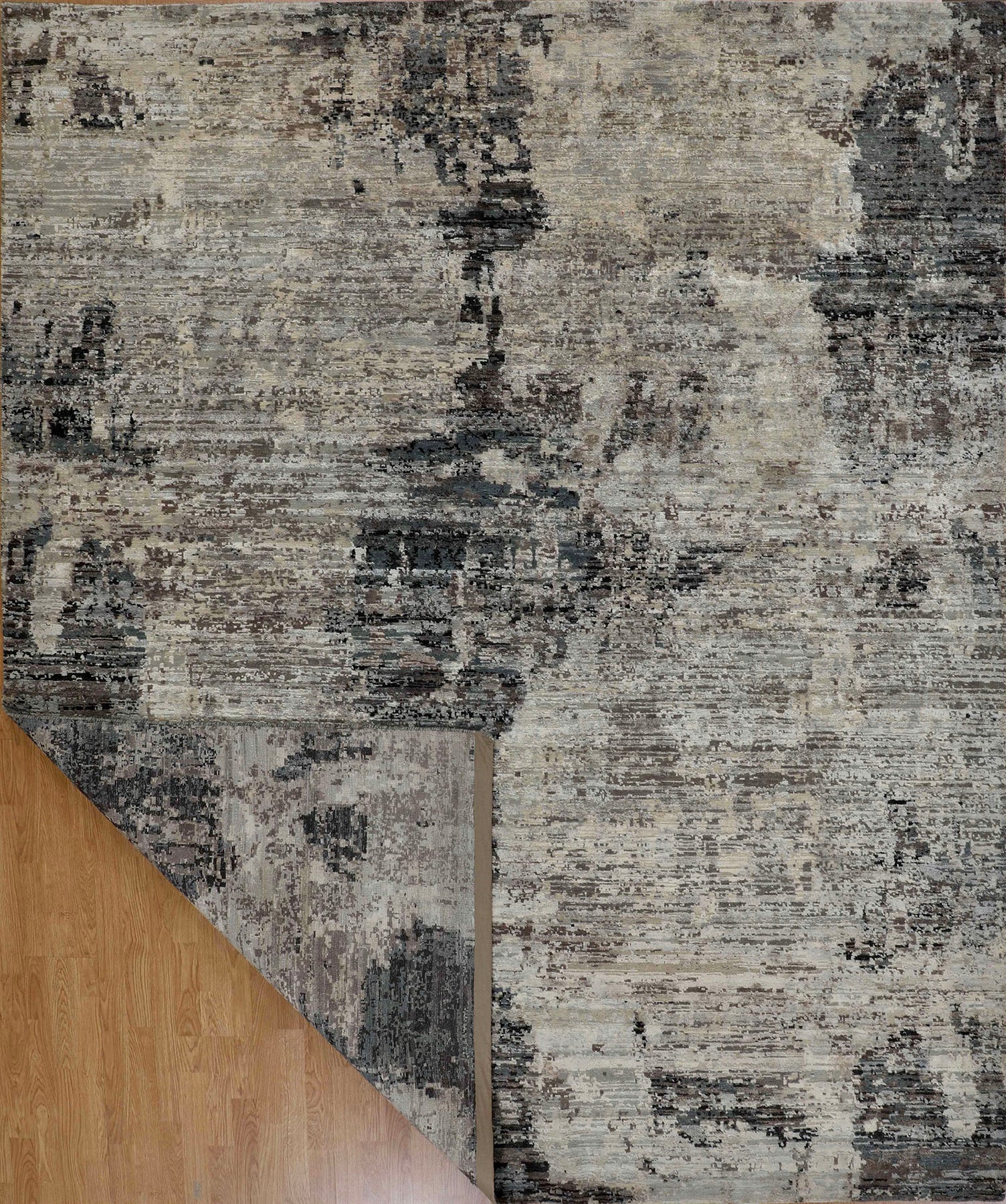 Modern/Transitional Grey/Silver Wool Area Rug: Mafi Signature Husk HUK-124 (Hand-Knotted Area Rug)