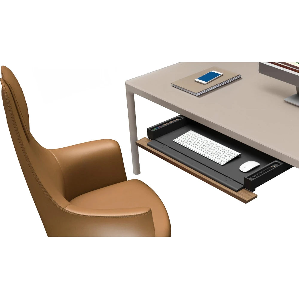 - Under-desk keyboard and storage drawer for compatible Luma desks.