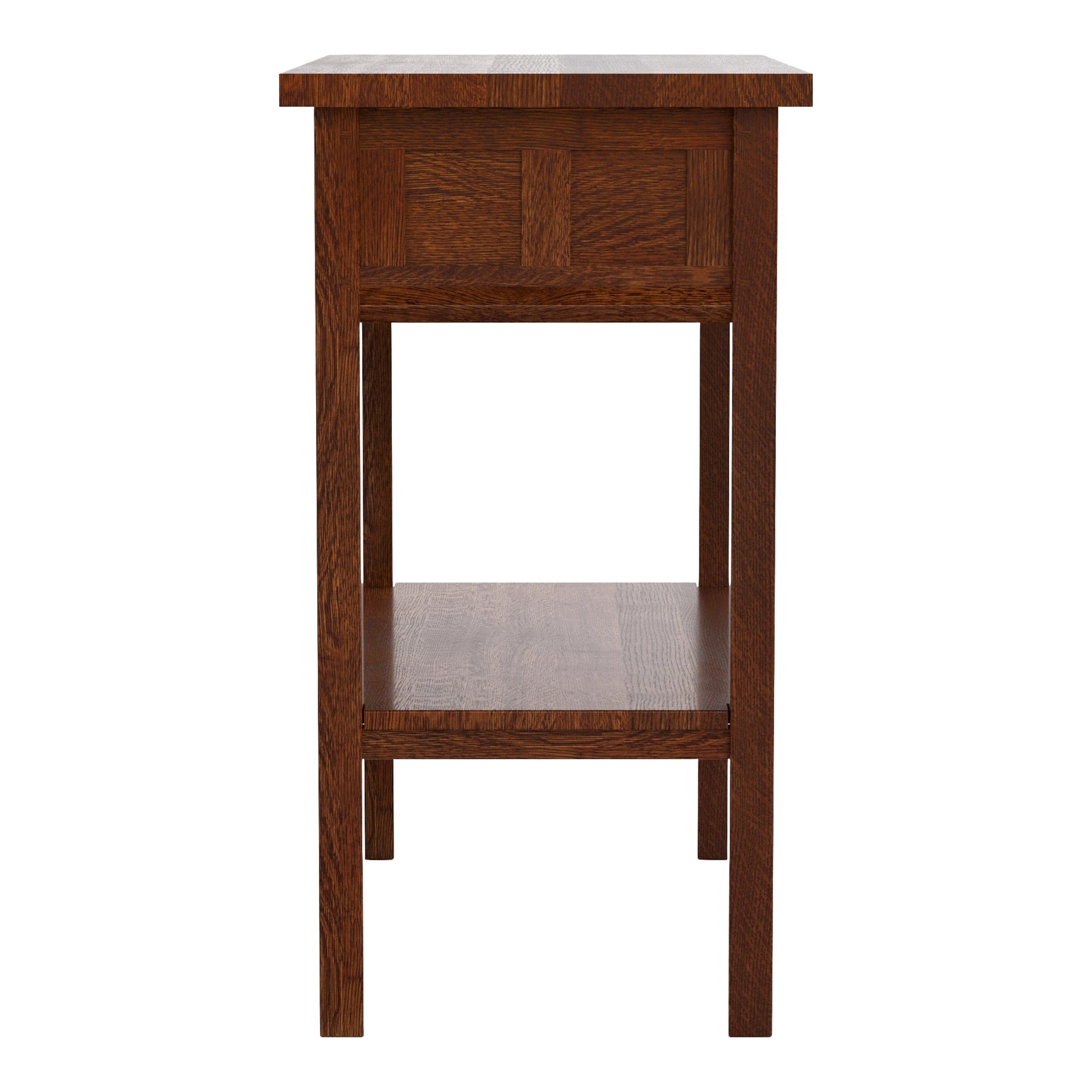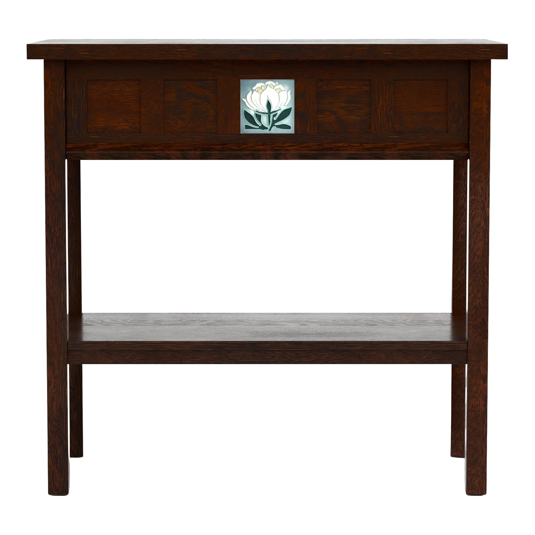 In honor of the 125th anniversary of Stickley's founding, the Floral Tile Collection has been thoughtfully designed to lend beautiful Mission personality and function throughout your home. The Console, suitable for use as a side table, entry table, or nightstand, features an attached slab top and a lower fixed shelf.