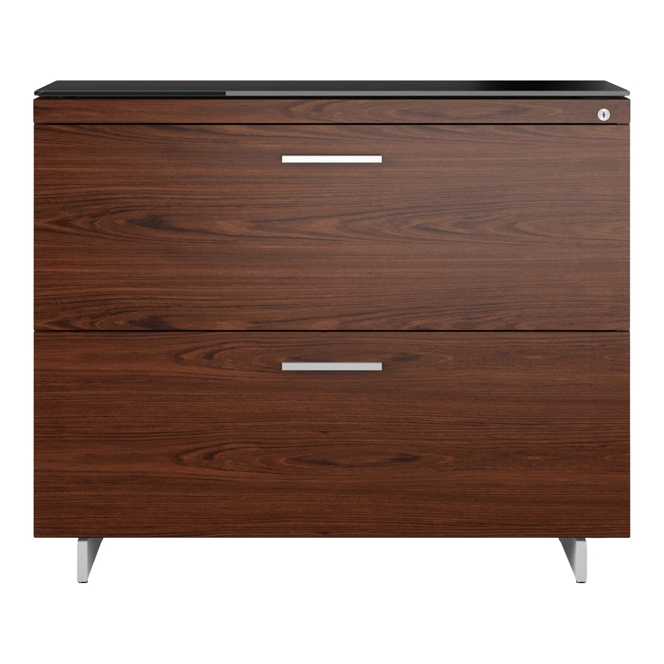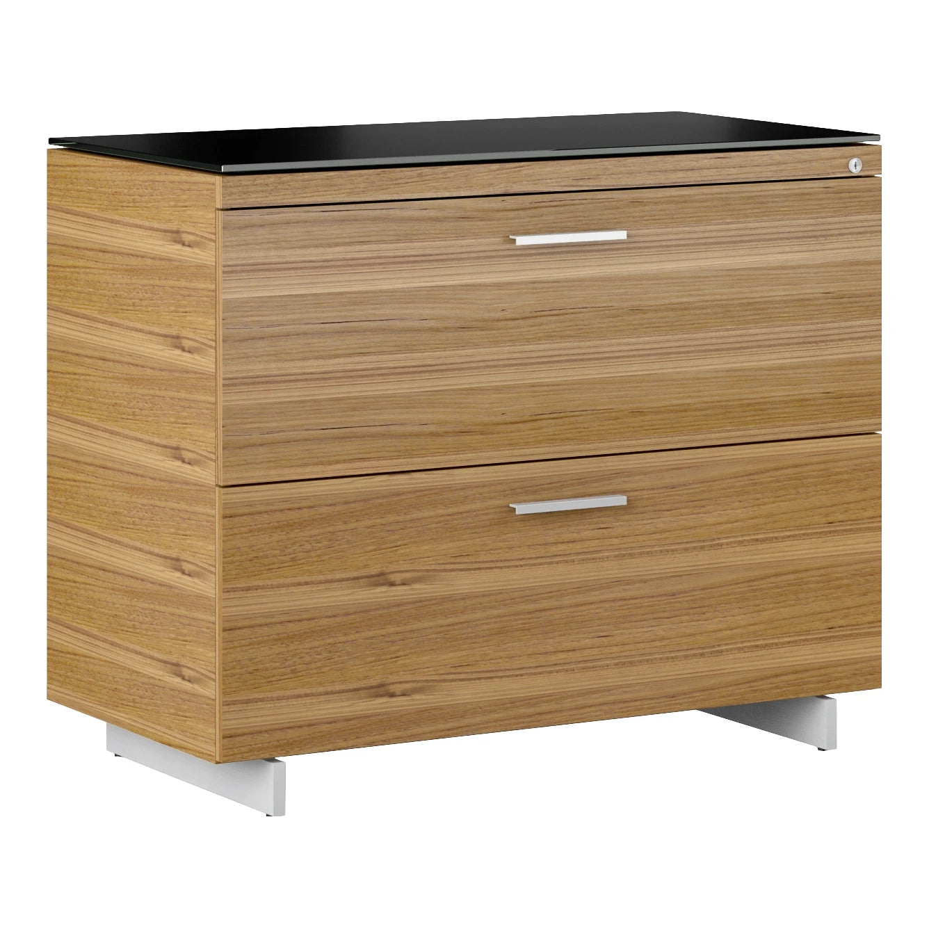 The 6116 Lateral File Cabinet elevates the everyday workspace with a refined, modern profile that feels right at home in a sophisticated Pacific Northwest interior. The Sequel 6116 is an attractive locking file cabinet that offers ample storage and is a convenient and stylish solution for organizing office supplies and important files, whether as a standalone piece or as the base for the Sequel Return. With innovative features such as an anti-tip mechanism and a counterweight for stability, this storage cabinet is topped with beautiful black satin-etched tempered glass resistant to scratches, dings, and fingerprints.