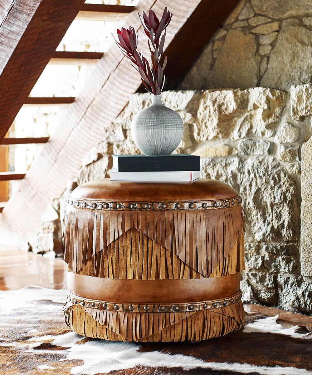 Leather Bullion Fringe is a type of decorative trim applied on the outside of furniture to portray a frayed look. Originally, bullion fringe was made only from plain or crepe cords, but Hancock & Moore has taken this concept and applied it to leather, giving it a unique and distinctive look.