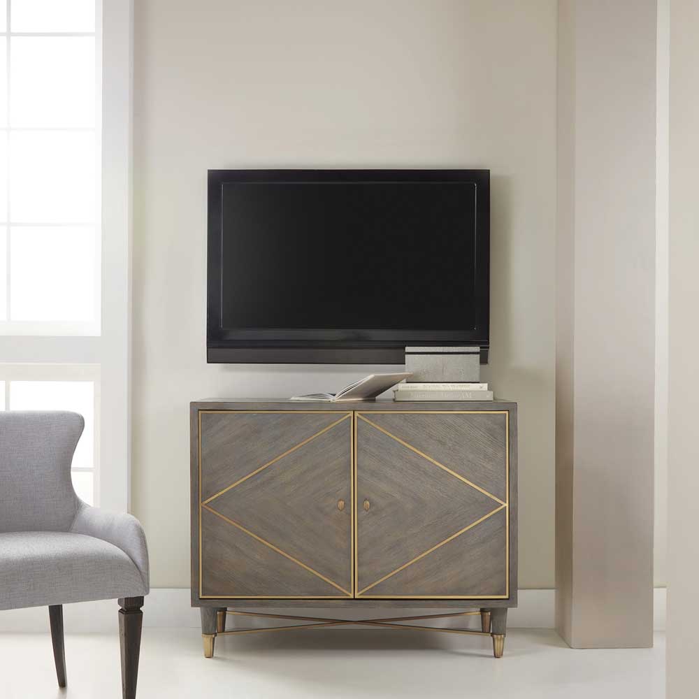 Melange Breck Chest brings a confident, design-forward feel to your space. Finished in Gray finish with gold accents, gold colored pulls. Distressing includes rasping., with a look that complements traditional/formal interiors.