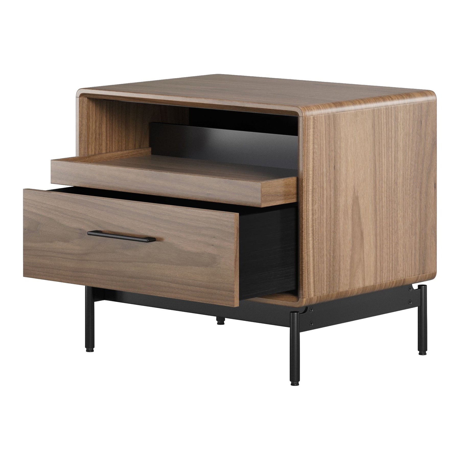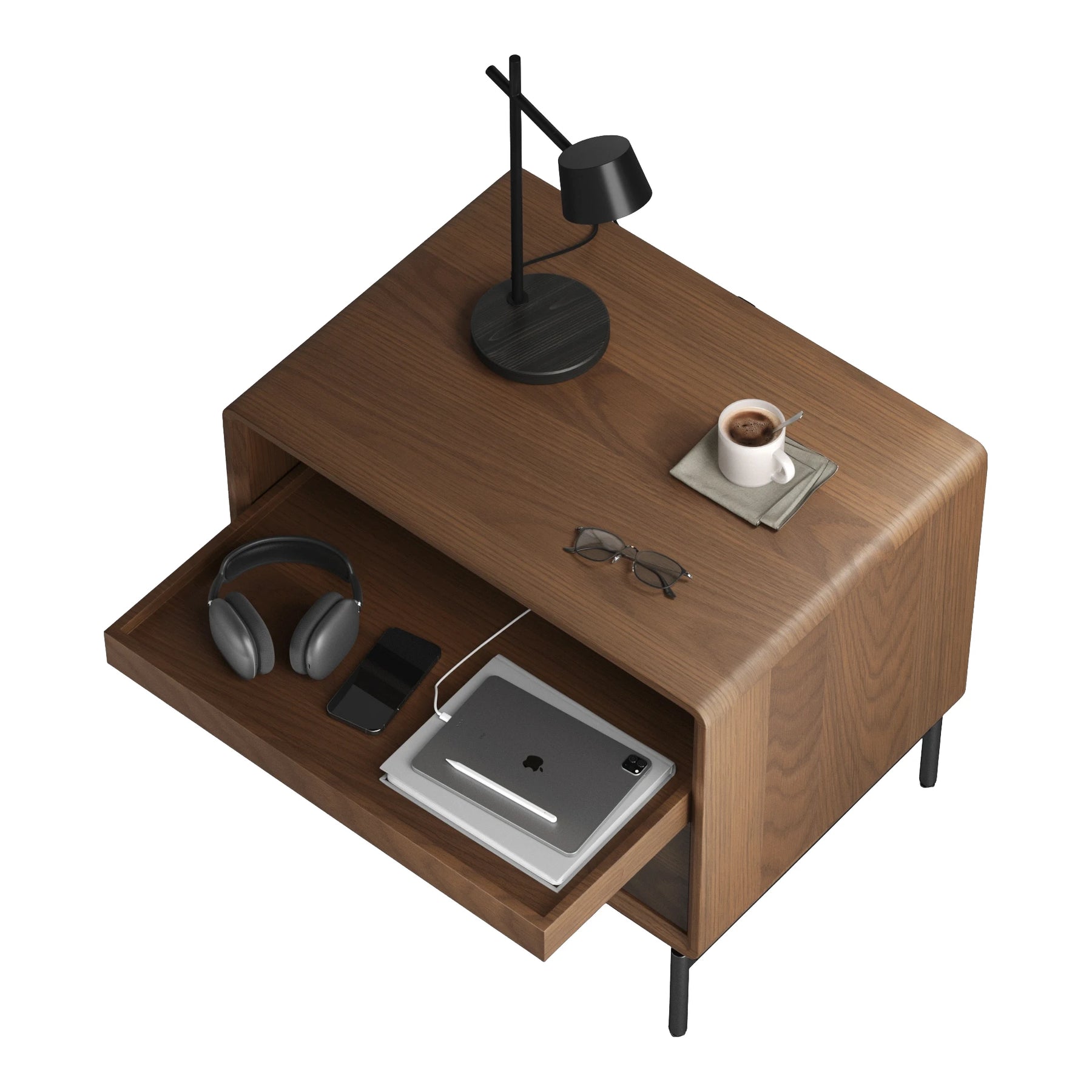 The 9182 28-inch Nightstand introduces a soft, modern presence that feels right at home in a calm, collected Pacific Northwest retreat. The ingeniously designed LINQ 9182 modern bedroom nightstand by BDI Furniture surprises with a sliding top, pulling items forward for easier access from the bed. A pullout shelf keeps nighttime essentials close at hand, while the integrated power station and cable management ensure you and your devices remain recharged and organized.