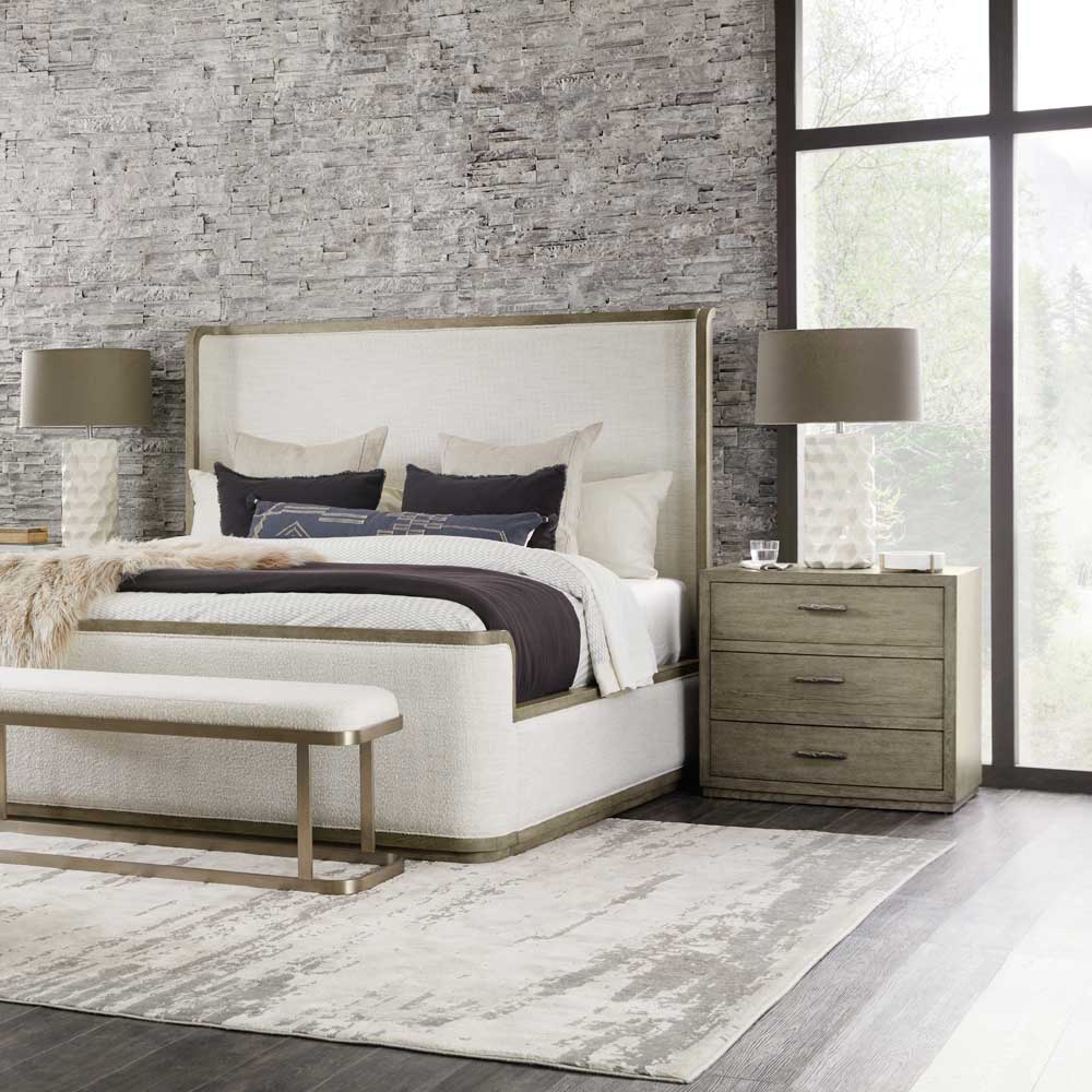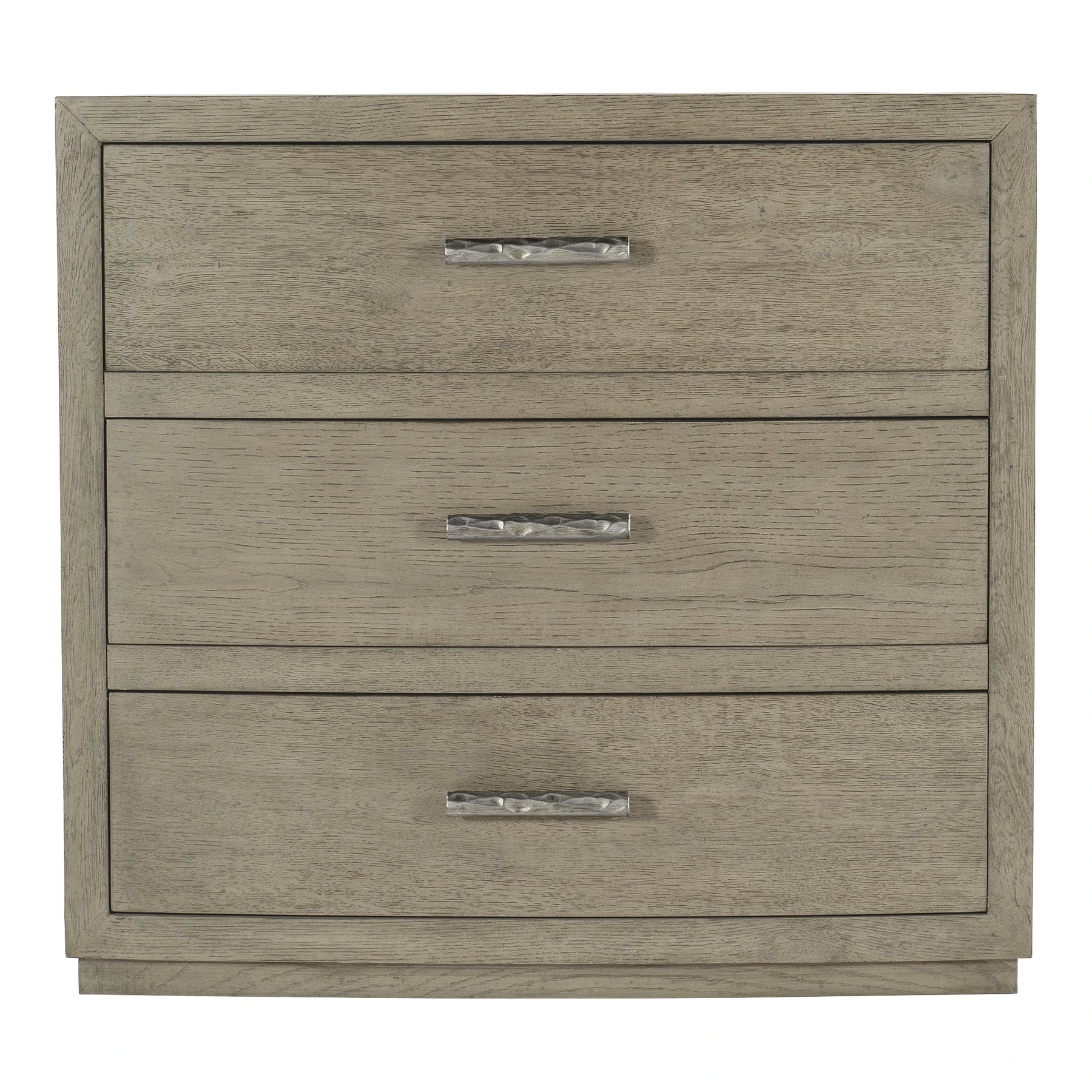 Linville Falls Ashford Three Drawer Nightstand brings a confident, design-forward feel to your space. Finished in Mink: A soft smoked gray finish. Textured metal bar pulls in an antique pewter finish., with a look that complements casual interiors.