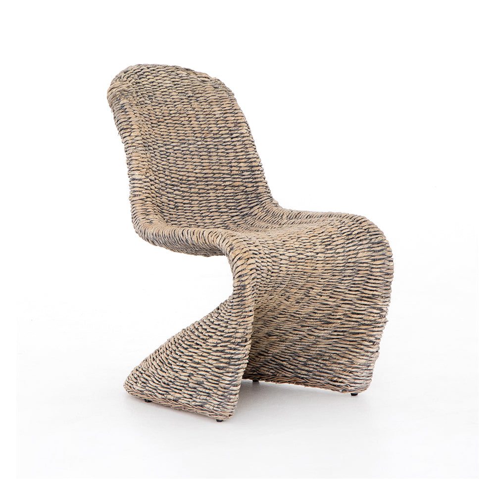 Strike a pose. Finished in a versatile washed grey, banana leaf seating curves to bring shapely intrigue to everyday dining.