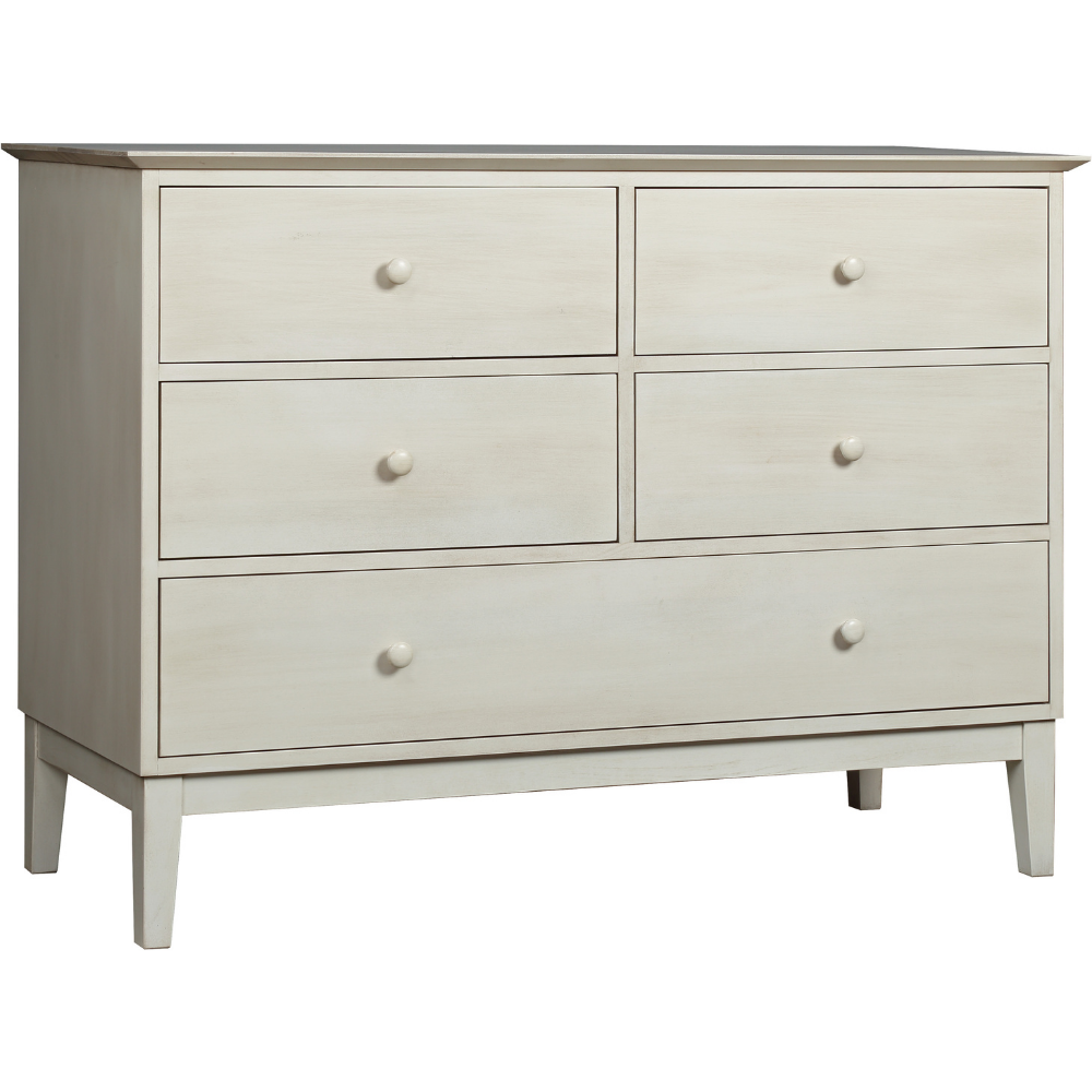 Details Five drawers with undermount drawer slides, plus a beveled top, bottom dust panel, tapered post base, and traditional mortise-and-tenon joinery make this a practical addition to any bedroom. Solid maple and choice of curated hardware.