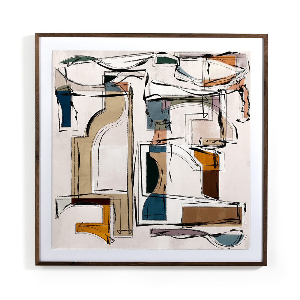 A shapely, abstract work by Bangkok-based art house Coup D'Esprit. Framed within rustic walnut for a gallery-quality look. Handmade in Austin, Texas.