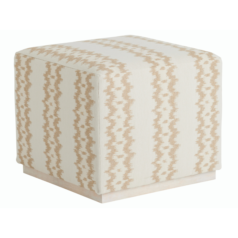 The 22-inch square Colby ottoman is one of those remarkable designs that works in virtually any room. Available in fabric or leather, they are perfect for use in pairs under a sofa table or console, at the foot of a bed, or as an alternative to a traditional cocktail table. They are particularly appropriate for use in living room areas where space is at a premium. Shown here in a tan and cream batik-style striped fabric.- Tight Seat