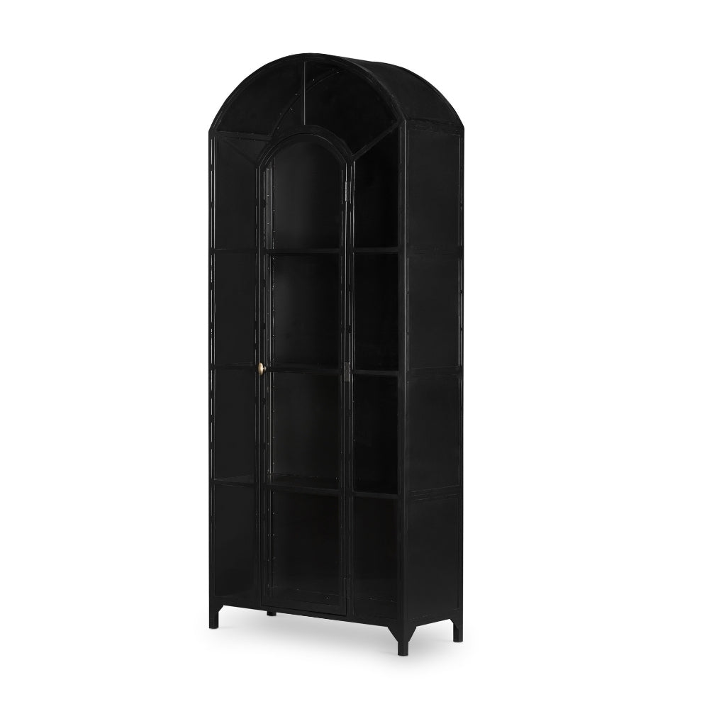 Display barware, books, and other treasures in beautifully arched cabinetry. Solid iron sheeting with clear glass fronts.