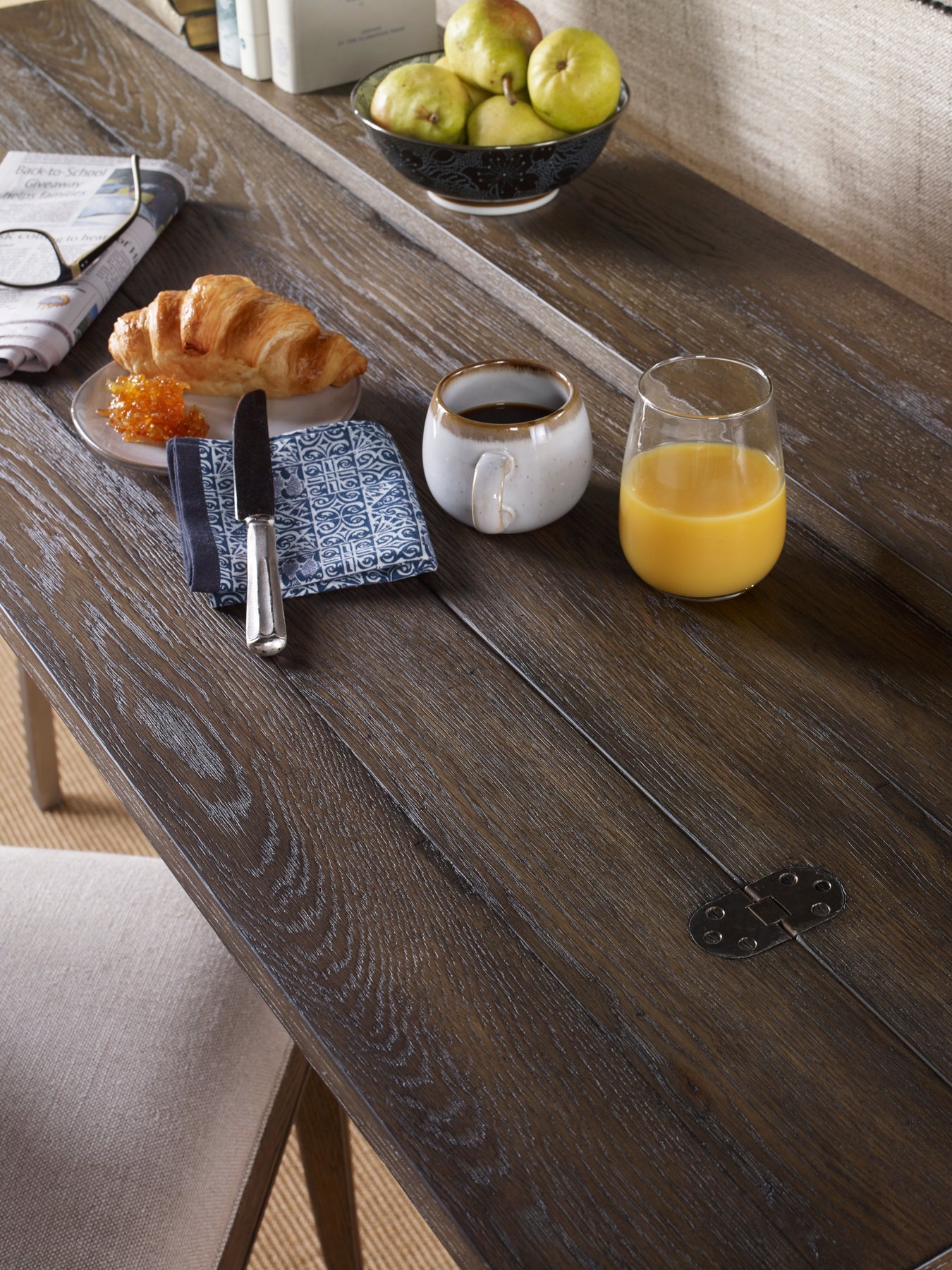 The Philip Flip-Top Table is a console that also functions as a table when its two leaves are opened–a place for a quick snack or checking email.