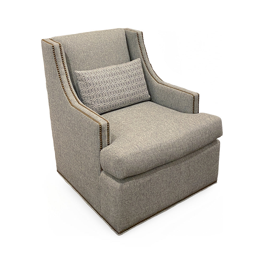 Experience luxurious comfort with the transitional style Crosby Swivel Chair. Its 360-degree swivel allows for versatile movement, while the shelter-style back and coordinating kidney pillow provide exceptional support and elegance. Add a touch of sophistication to any room with this must-have piece!