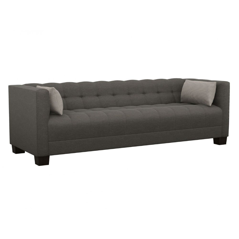 This sofa design offers a modern interpretation of a classic contemporary frame. The channel-tufted seat and back give the piece dimension without sacrificing clean lines.