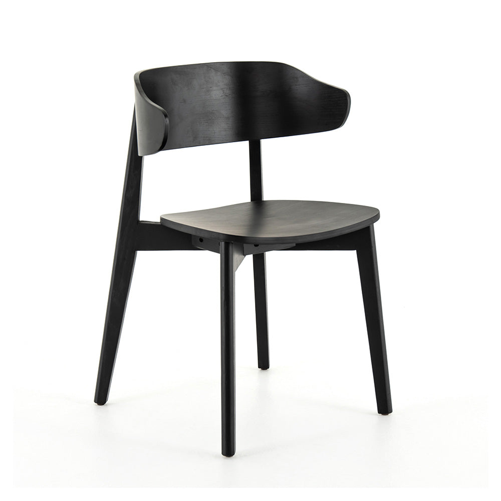 A fresh, exaggerated take on the wing-back dining chair. Finished a classic jet black, a mix of solid ash and ash veneer makes a modern and shapely seating statement with mid-century undertones.