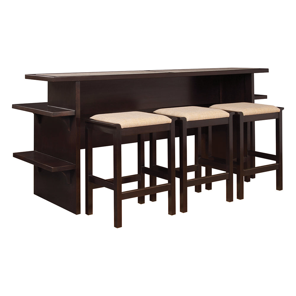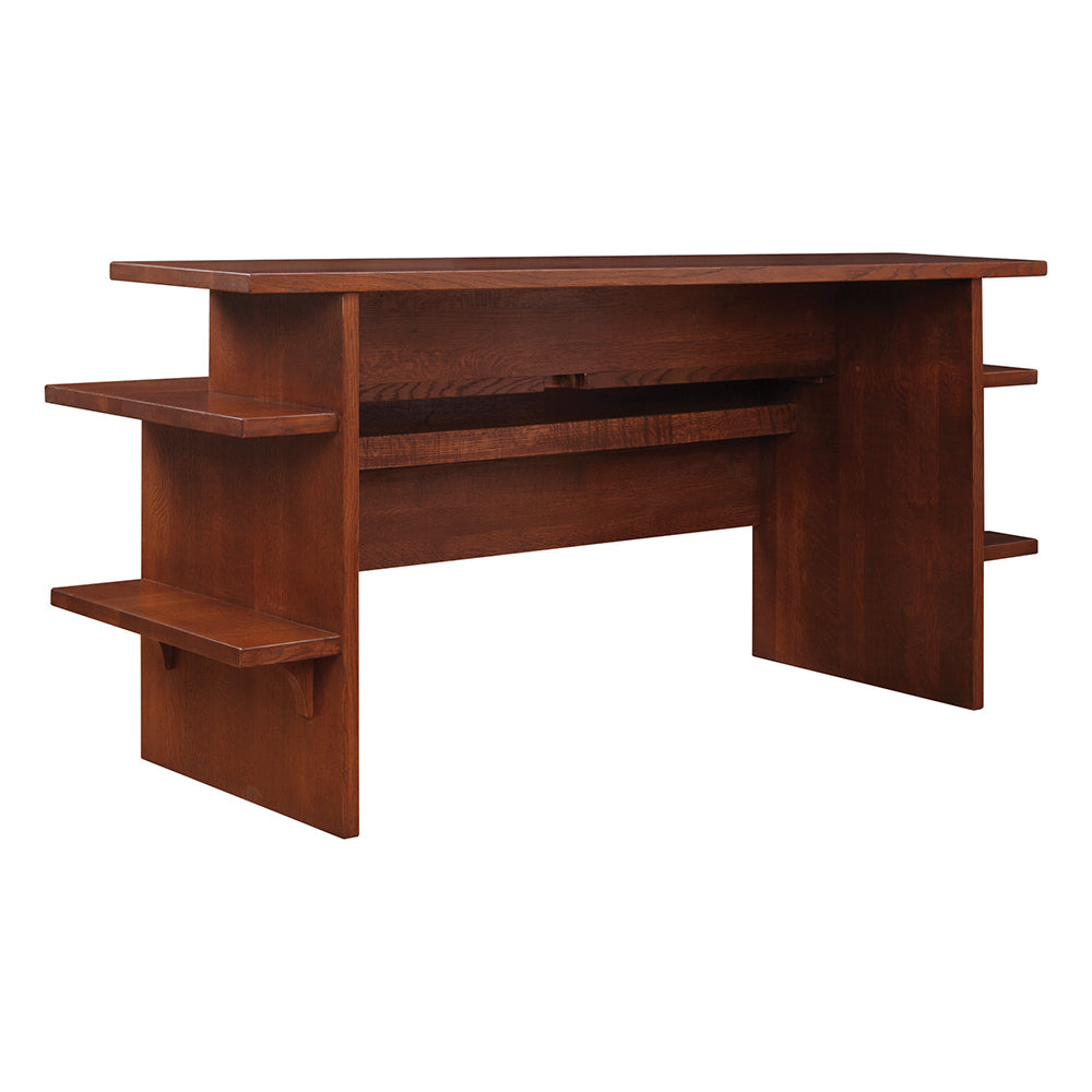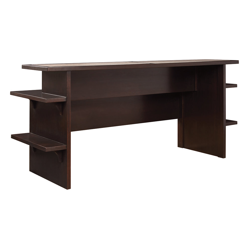 This thoughtful piece can be placed along the back of a sofa, providing storage and a place to serve food and drinks. Add counter stools to create an alternate seating area. For work, a built-in power strip with USB and wire access are ready to accommodate laptops, lights, and chargers.