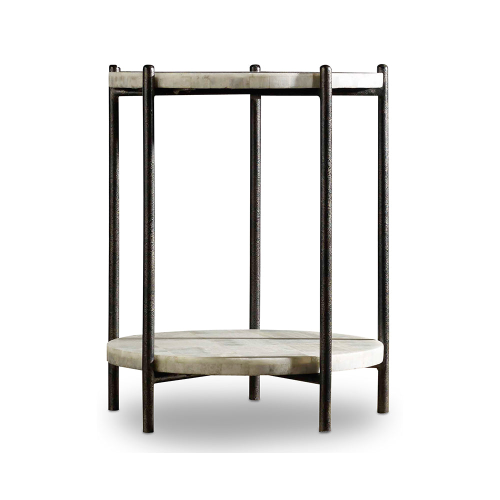 Industrial meets organic with the chic and couture Blythe Accent Table, combining an alluring White Onyx top and bottom shelf with patterned veining with 5 slender metal legs. At only 18 in W by 18 in D, this versatile piece will add character even to small spaces