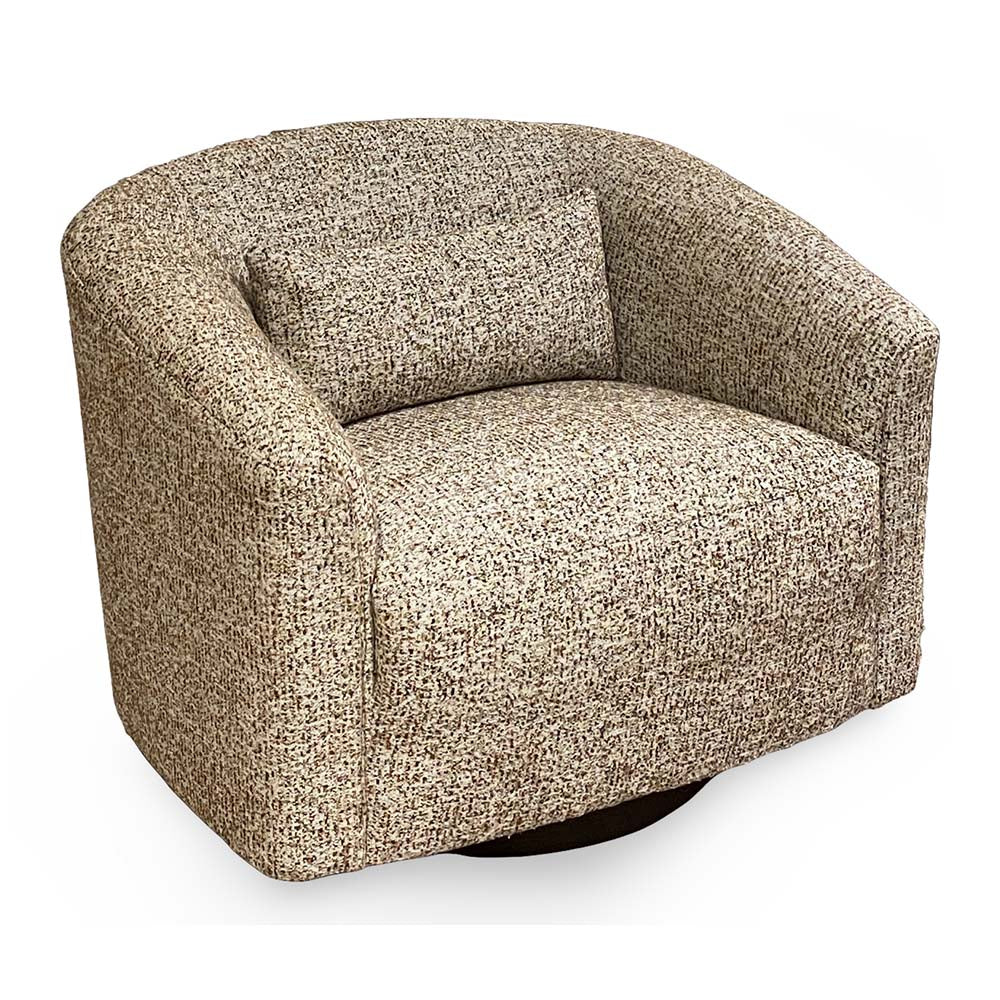 With its enveloping flared arms, tight seat with kidney pillow, and finished pedestal of solid oak, the Oleander Swivel Chair pairs beautifully with a Hayward Curved Sofa or Sectional. You can purchase the chair as shown or customize it in any fine Stickley fabric or leather and any maple finish.