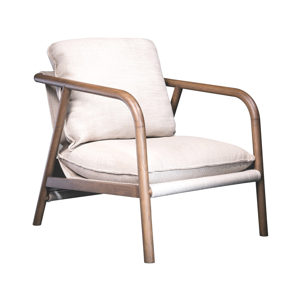Designed for ultimate lounging, the Sage chair features cushioned seating on a sling-style base, supported by a solid oak frame.