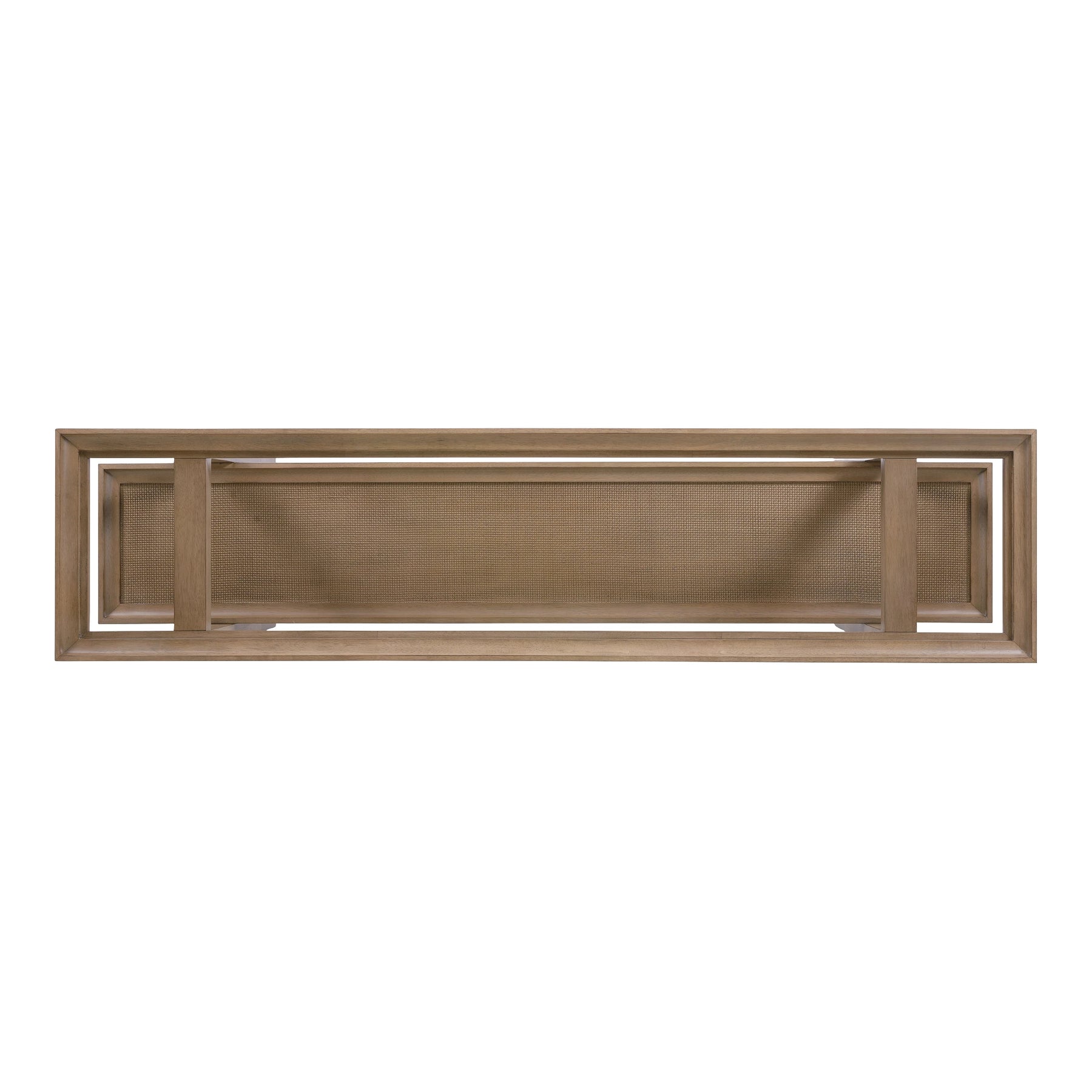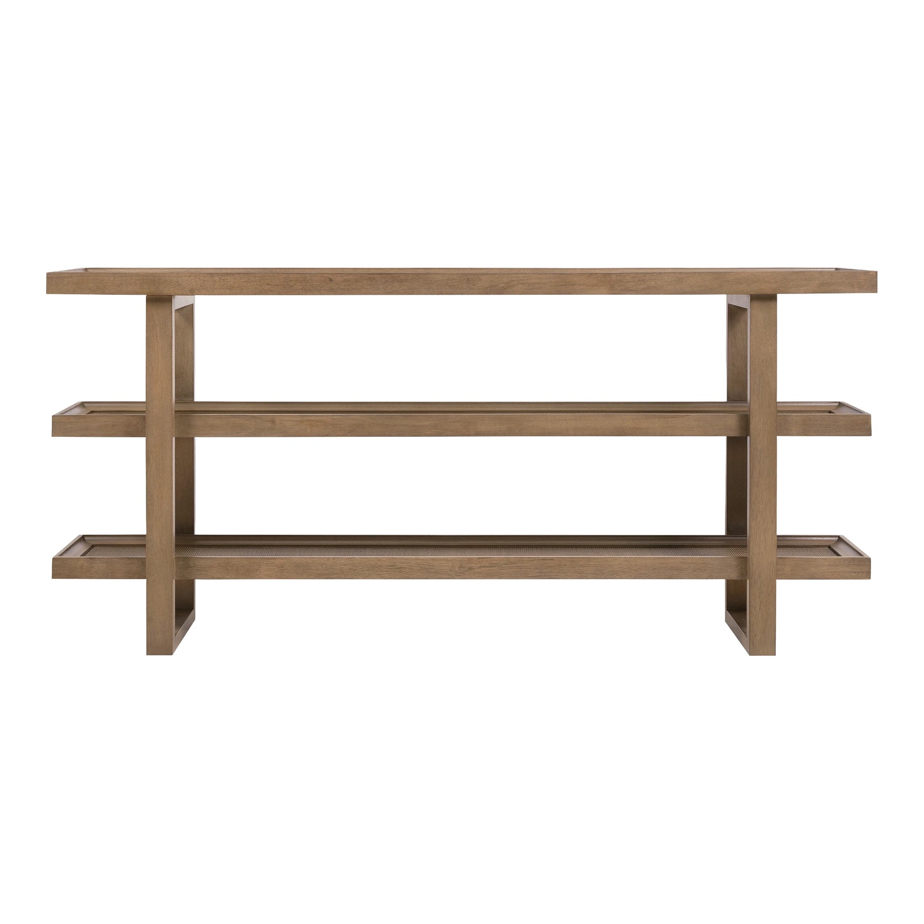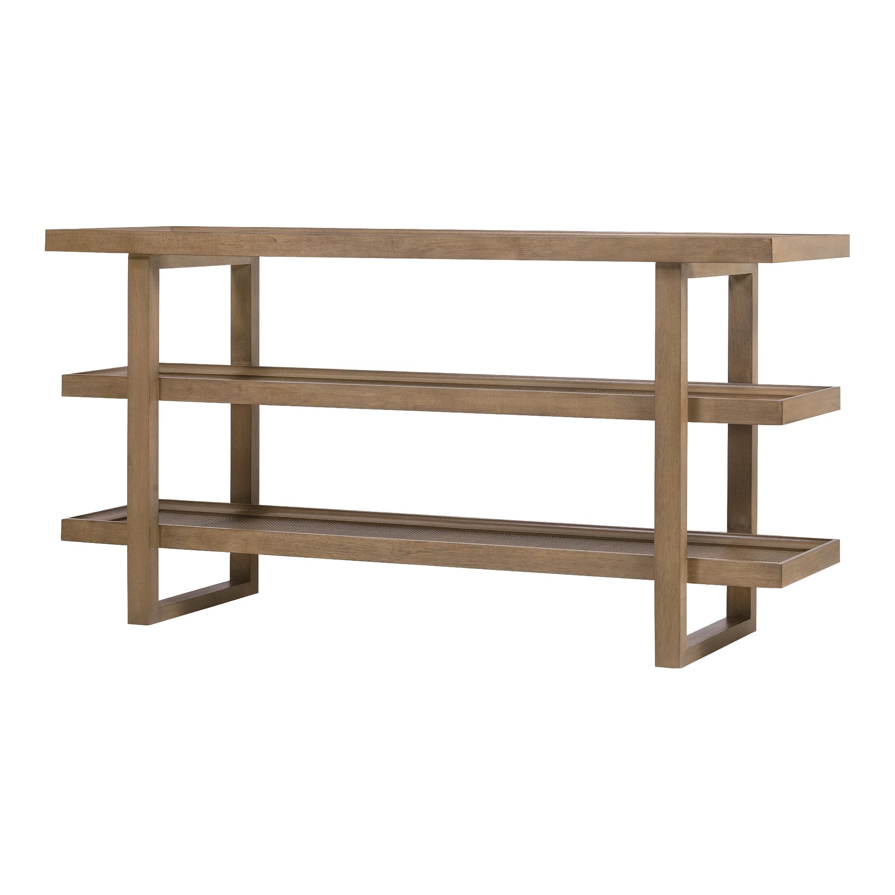 Sonnet Console Table brings a confident, design-forward feel to your space—Finished in Wren: quartered and cathedral-cut white oak veneers in a light earthen-toned finish. Matching woven split cane shelves., with a look that complements transitional interiors.