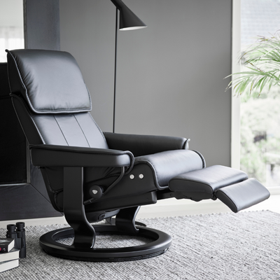 Stressless® Admiral is a timeless recliner with a comfortable firm seat and a height-adjustable headrest. The design is accentuated by distinctive details in the stitching. The adjustable headrest can add an additional 10cm to the back height when desired, making it a great choice also for those with a longer back.