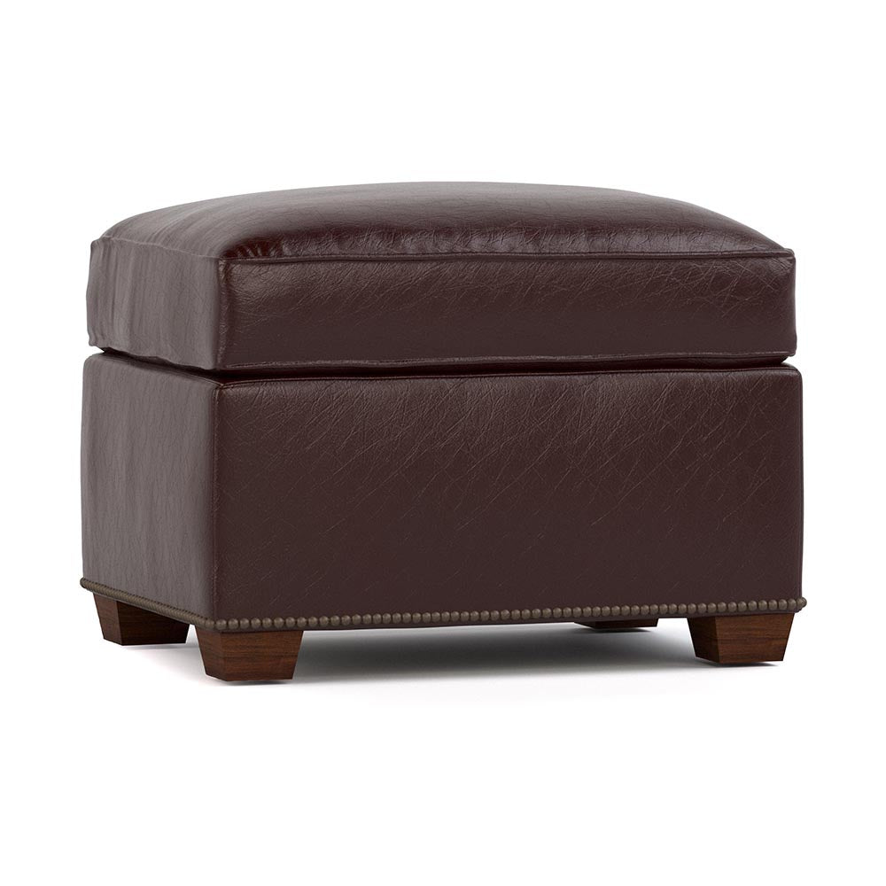 The Wharton Ottoman is a classic, comfortable foot rest featuring a plush cushion, neat tailoring, and half-inch nailhead trim. Its tapered solid maple feet provide a modern detail. Available in two pull-up Durango leathers for Express Ship.