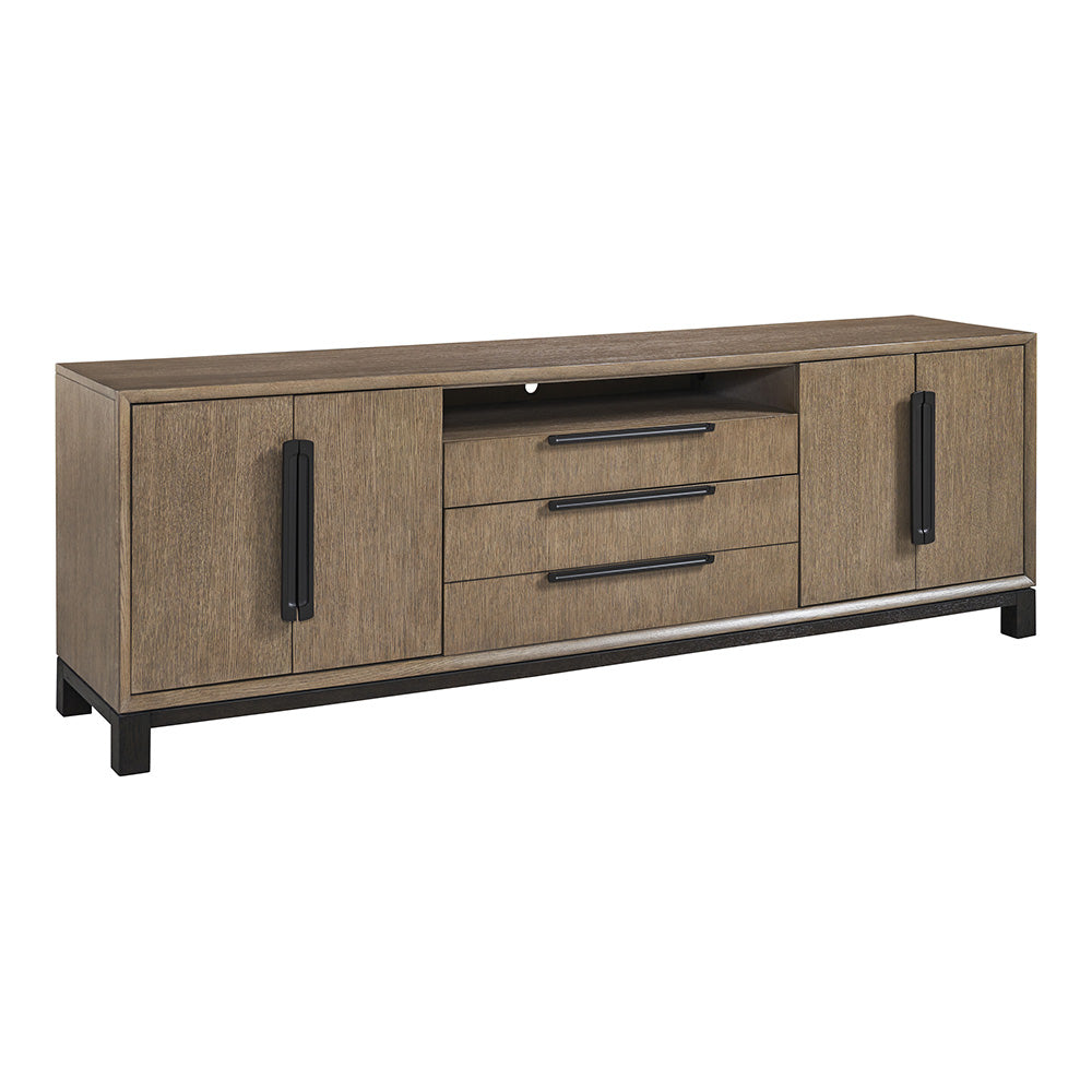 Zanzibar offers a fresh take on relaxed contemporary living. In a play on contrasts, designs are crafted from quartered white oak in a warm taupe finish with bases and accents in a deep espresso coloration. Surfaces are gently wire-brushed to enhance the wood’s natural grain, while sleek custom hardware, finished in dark umber, offers a striking complement. Upholstered seating features clean architectural lines with exceptional tailoring, highlighted by organic and textural fabrics in rich earthy tones. The look is approachable, yet dramatic in its interpretation of casual contemporary style.